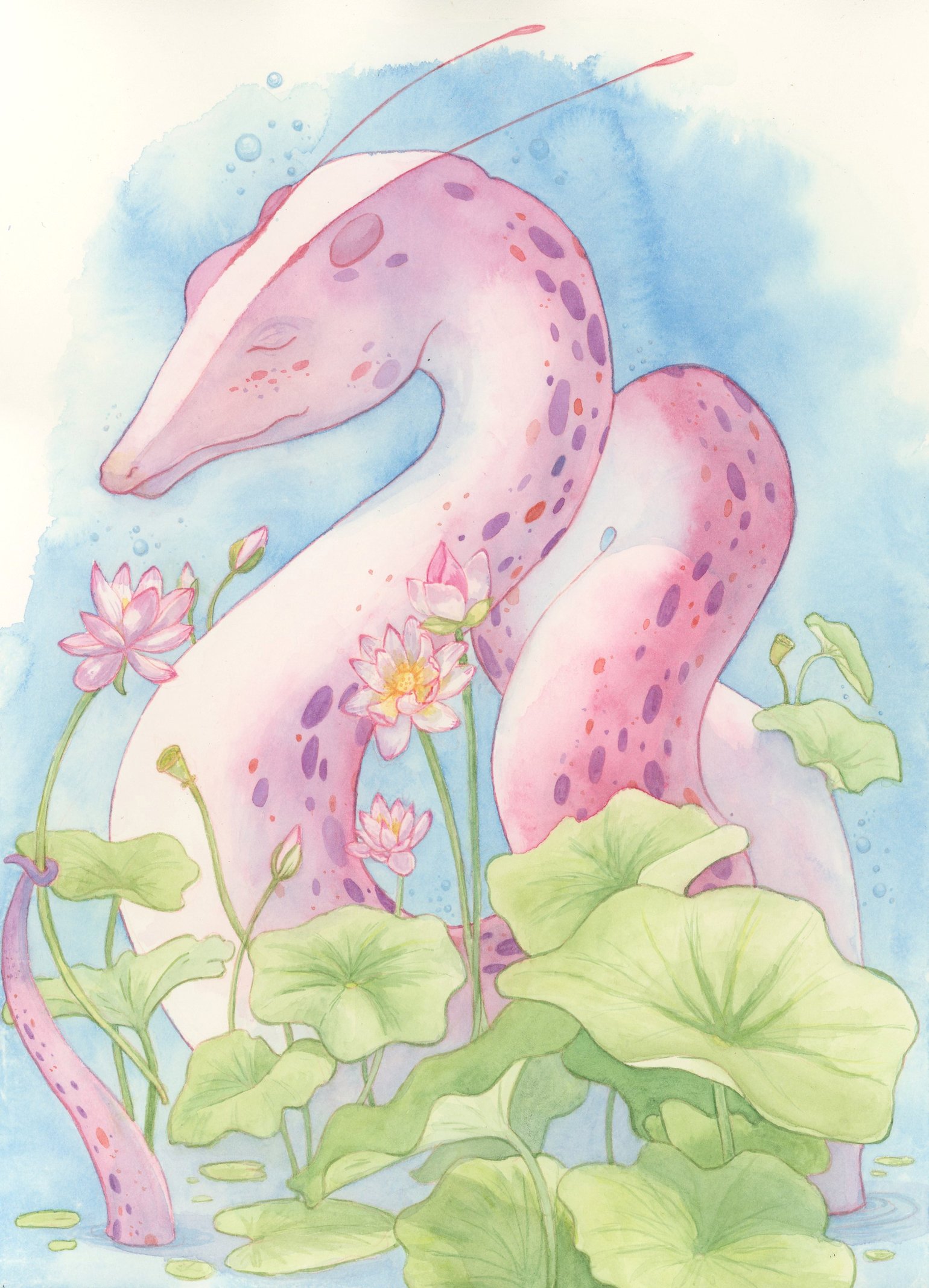 Just a sweet, peaceful dragon relaxing with her favorite flower.